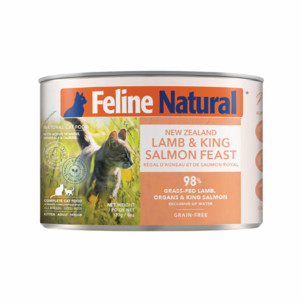 Made with grass-fed, free range Lamb and sustainably caught King Salmon, this Lamb & King Salmon diet provides the rich proteins, Omega 3 fatty acids, EPA and DPA to assist a cat's natural anti-inflammatory responses and supports healthy skin, coat and joints.
