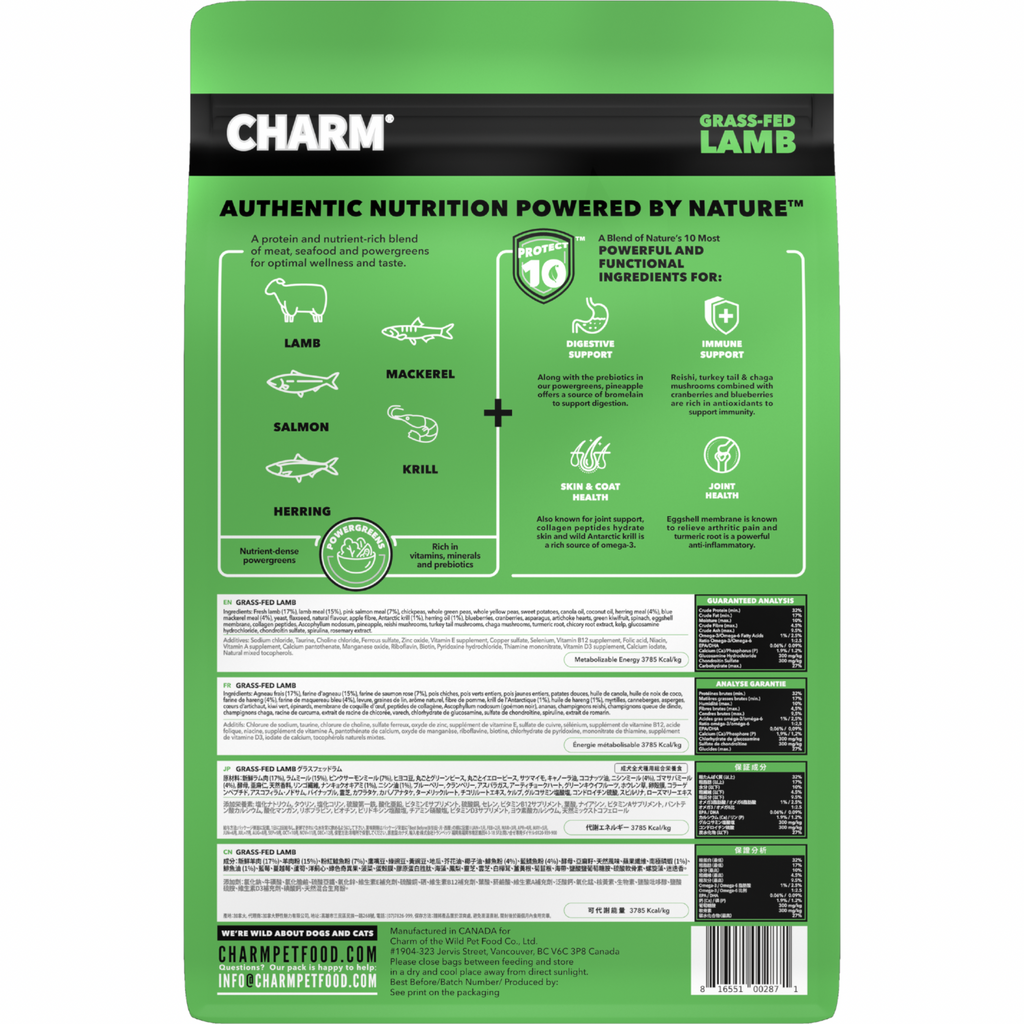 CHARM®Grass-Fed Lamb Dog Food is formulated to meet the nutritional levels established by the AAFCO Dog Food Nutrient Profiles for maintenance.