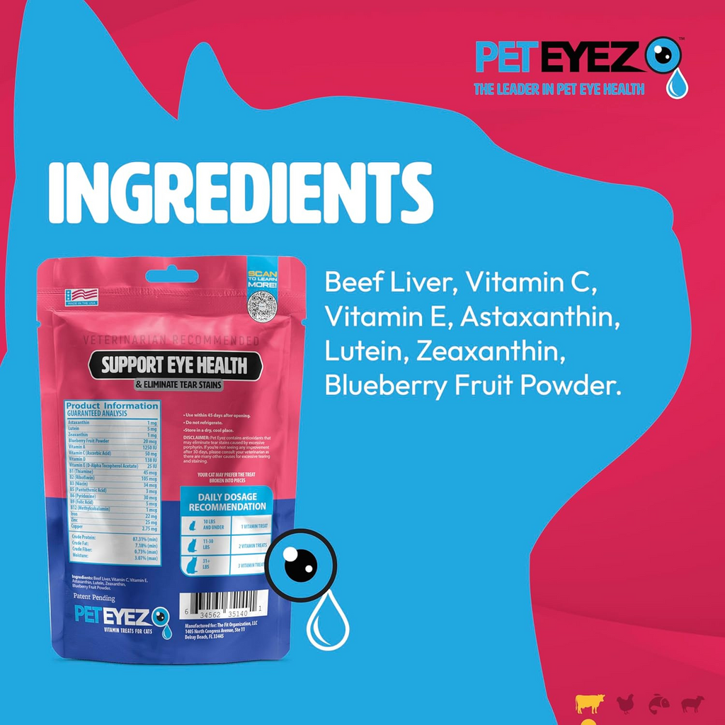 Pet Eyez™️ are made with antioxidants and natural ingredients that are safe for pets. Some benefits of using Pet Eyez™️ include: