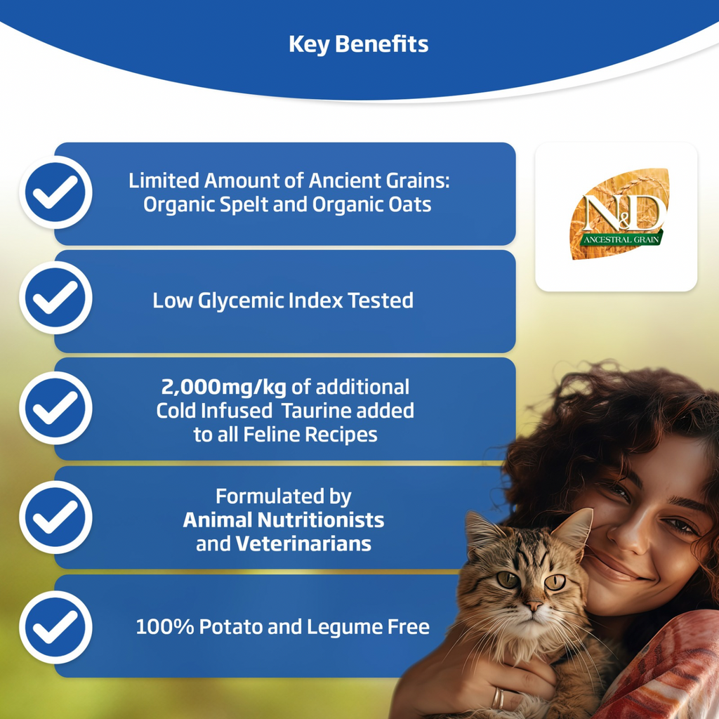 Elevate your cat's health with N&D Ancestral Grain line: