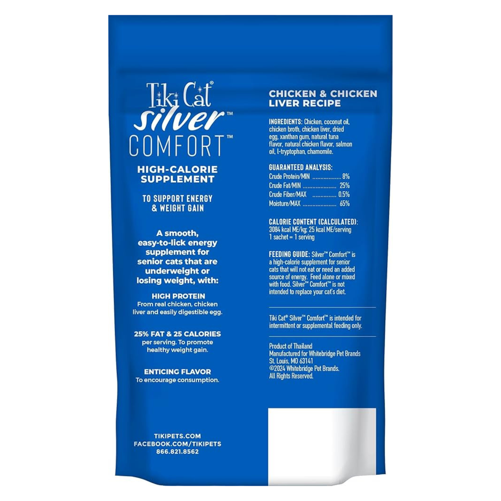 Silver Comfort is a high-calorie supplement for adult cats that will not eat or need an added source of energy. Feed alone or mixed with food. Silver Comfort is not intended to replace your cats diet.