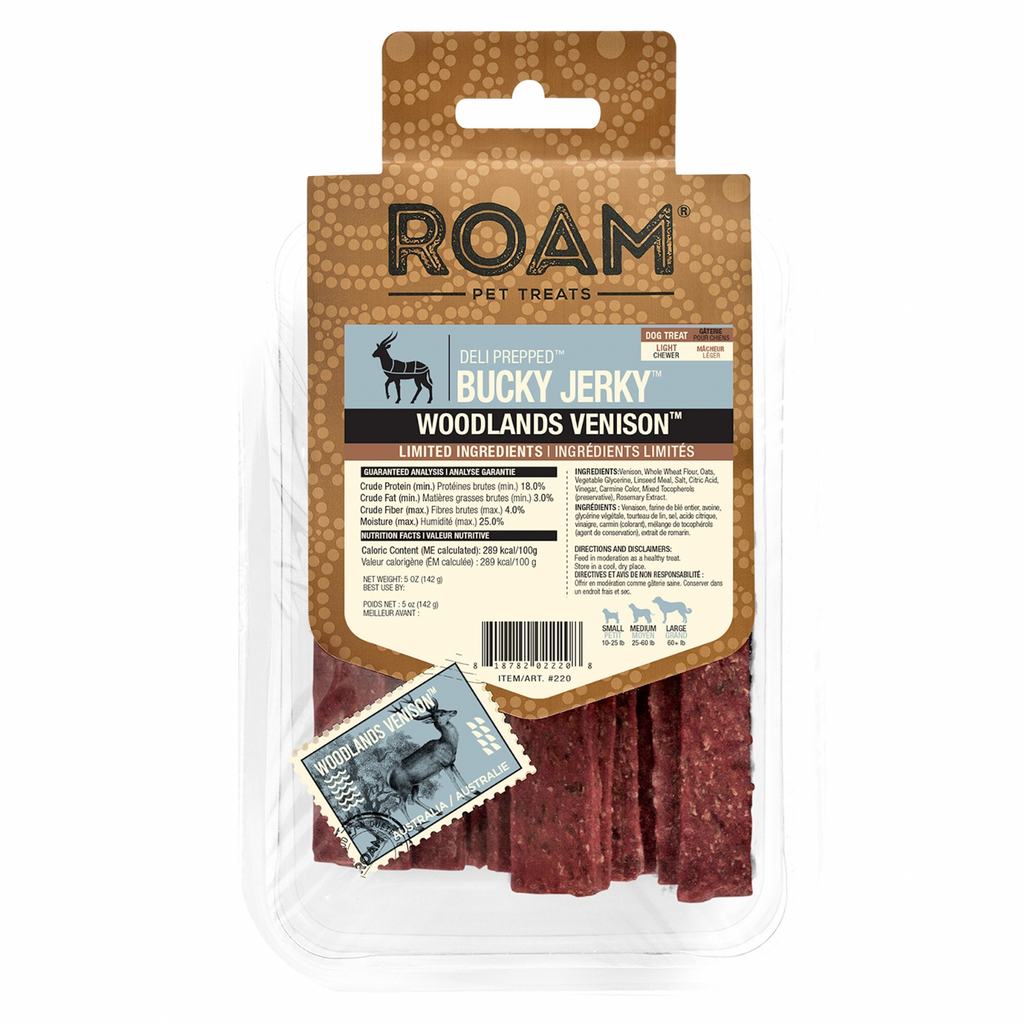 *(Please Use By 2026-05-12)* Jerky Dog Treat - WOODLANDS VENISON - Bucky Jerky - 142 g