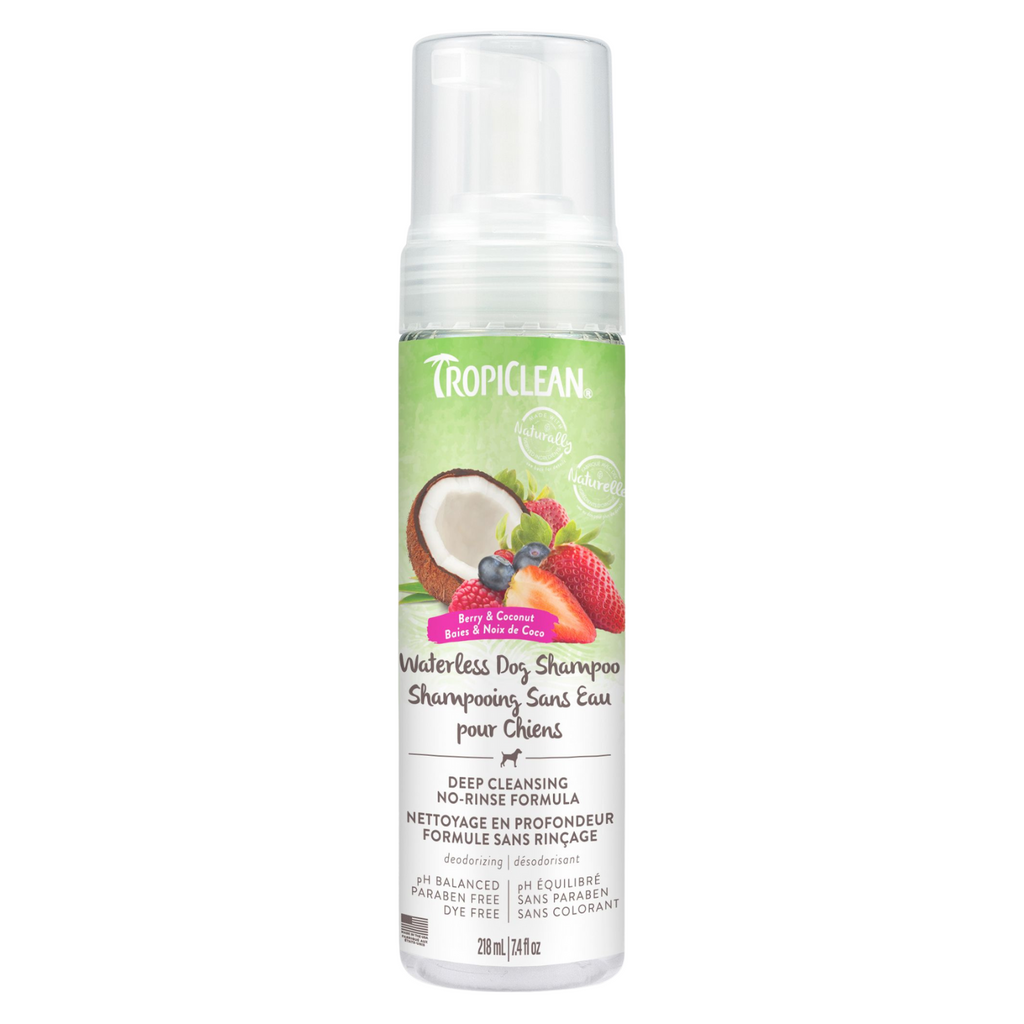 No time for a bath? No problem. TropiClean Deep Cleansing Waterless Dog Shampoo is here to the rescue! This easy-to-use, no-rinse formula provides a deep clean and leaves your pet looking and smelling fresh between baths. Simply massage cleanser into the coat and brush it out. Made with an invigorating blend of cucumber, white plum, and oatmeal extracts, this deep cleansing formula helps to clean and hydrate the skin and coat. With no water required, TropiClean waterless shampoos are the perfect on-the-go solution for adventurous pets who love going to the park, beach, and on road trips.