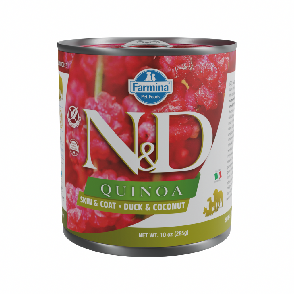 N&D Quinoa Dog Skin & Coat Duck & Coconut Recipe is formulated to meet the nutritional levels established by the AAFCO Dog Food Nutrient Profiles for maintenance. 100% Satisfaction Guaranteed.