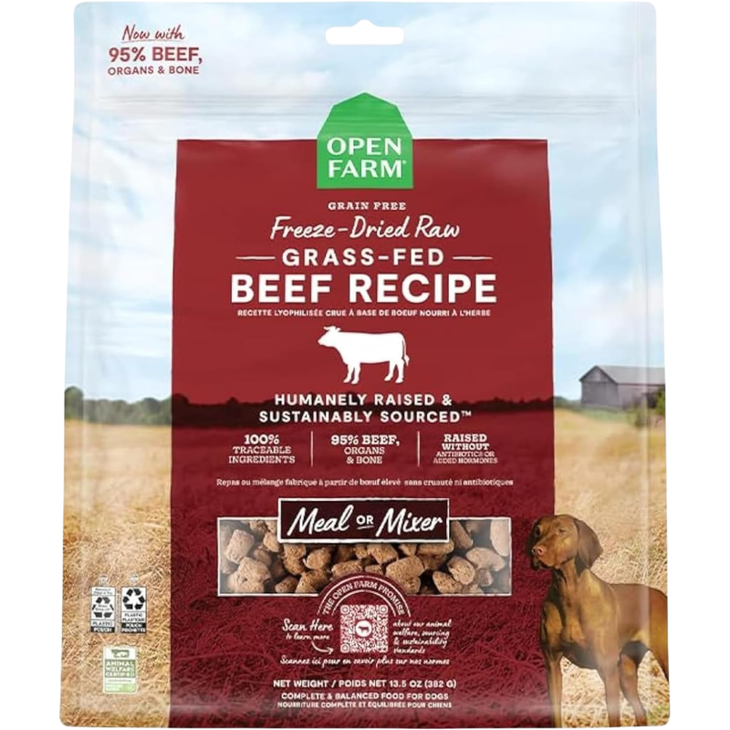 Open Farm Grass-Fed Beef Freeze Dried Raw Recipe is formulated to meet the nutritional levels established by the AAFCO Dog Food Nutrient Profiles for all life stages.