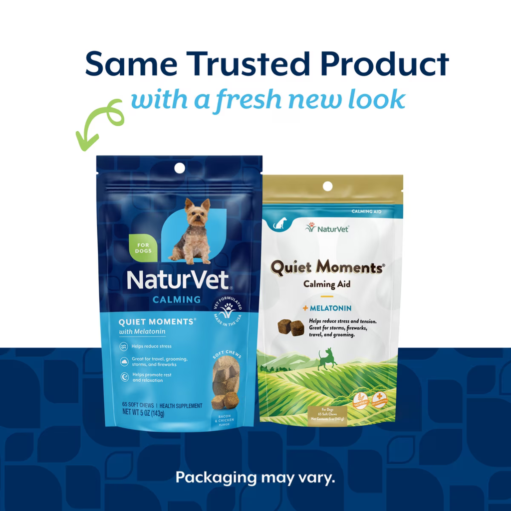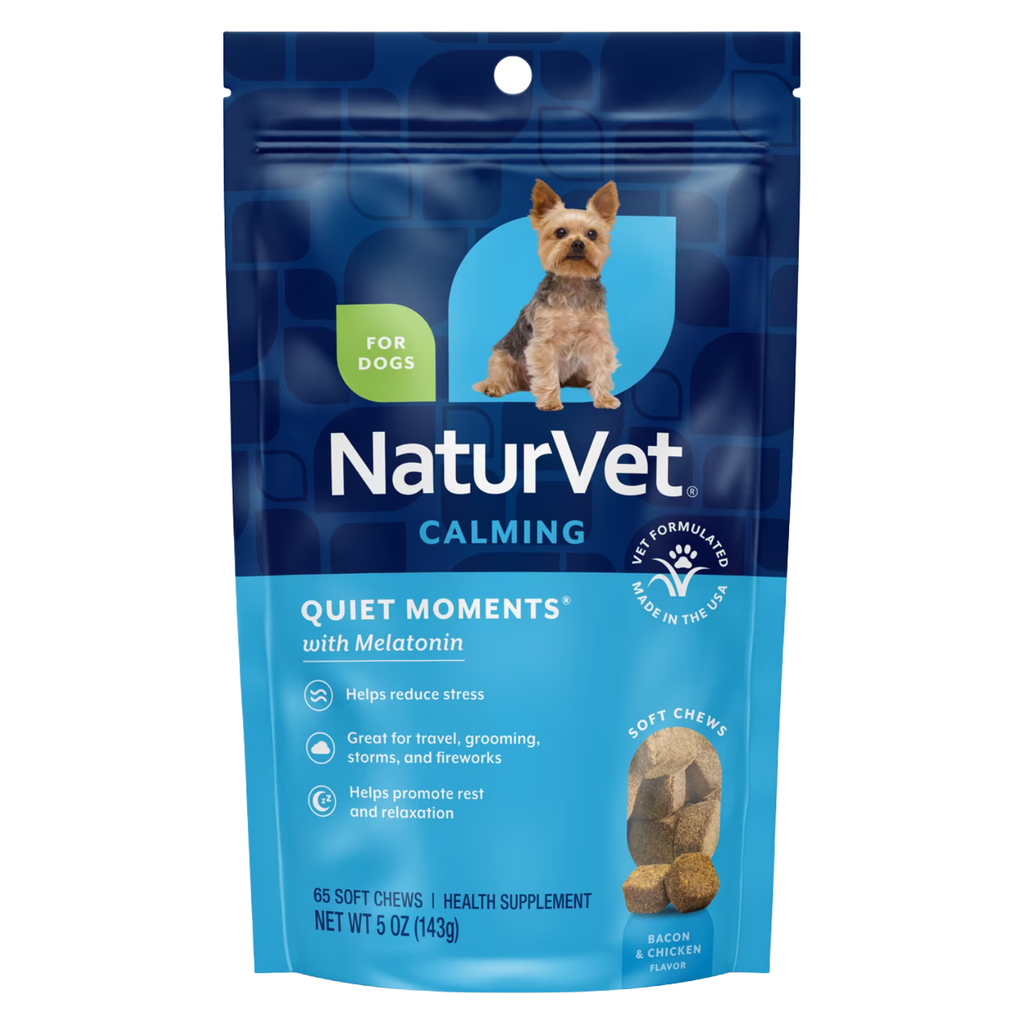 Give your dog the gift of calm with Quiet Moments® Calming Soft Chews, a health supplement designed to help ease anxiety, stress, and restlessness. Veterinarian formulated for dogs, these soft chews combine Melatonin with a unique blend of calming ingredients like Chamomile, L-Tryptophan, and Thiamine, providing gentle, effective support for anxious or restless dogs. Whether it’s car rides, thunderstorms, fireworks, vet visits, or bedtime routines, our soft chews will help your dog feel safe, secure, and relaxed.