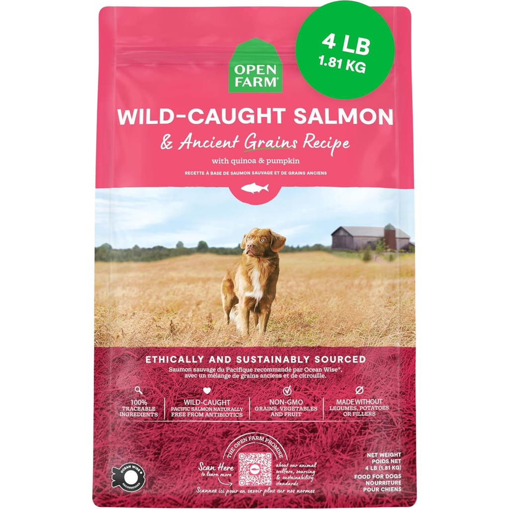 Open Farm Wild-Caught Salmon & Ancient Grains recipe is formulated to meet the nutritional levels estimated by the AAFCO Dog Food Nutrient Profiles for all life stages except for the growth of large-size dogs (70 lbs or more as an adult).