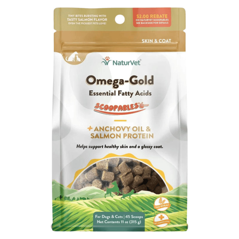 *(Please Use By 2026-04-30)* Dog & Cat Supplement - SCOOPABLES - SKIN & COAT, Omega-Gold Essential Fatty Aids + Anchovy Oil & Salmon Protein - 45 scoops