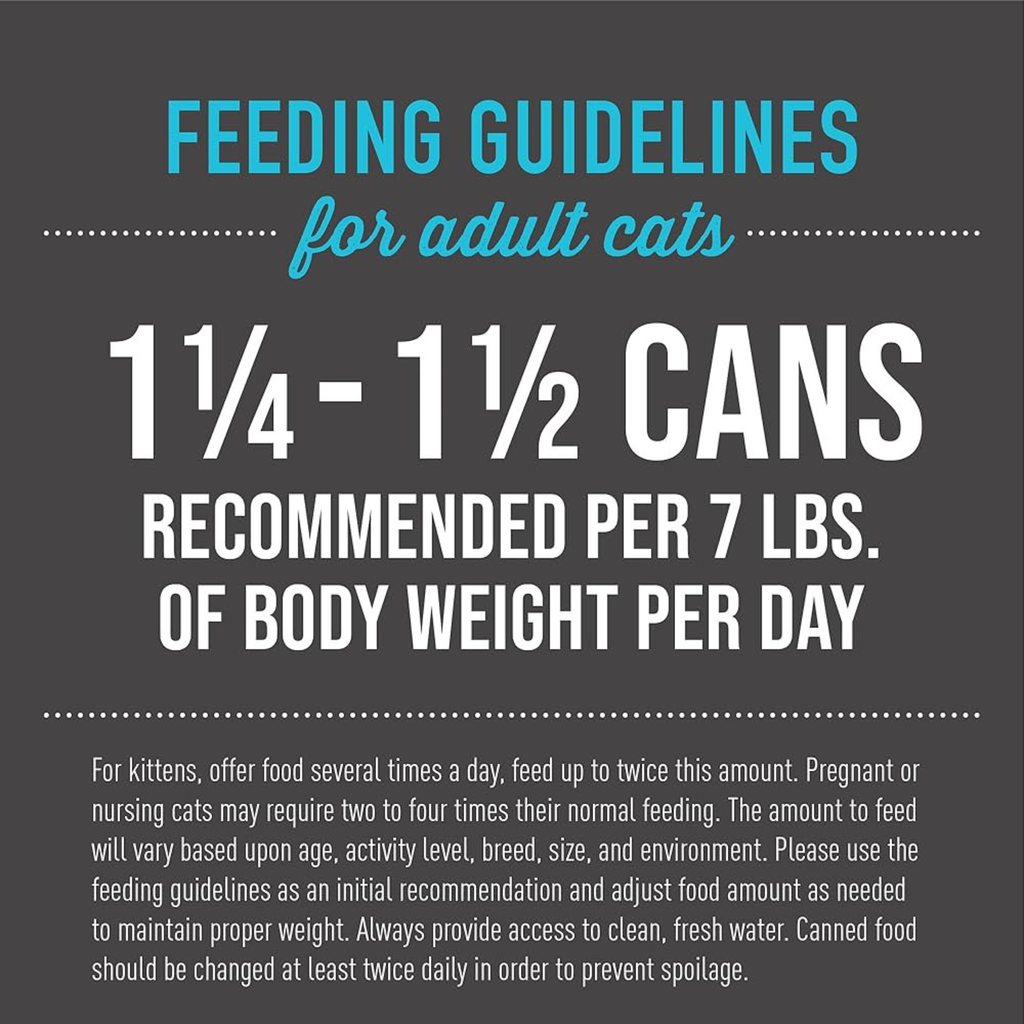 Recommendations vary greatly, based on your cat’s age, activity level and life stage. For adult cats, feed approximately 2-3 cans/pouches per day per 7 lbs. of body weight. For kittens, offer food several times a day, feed up to twice this amount.