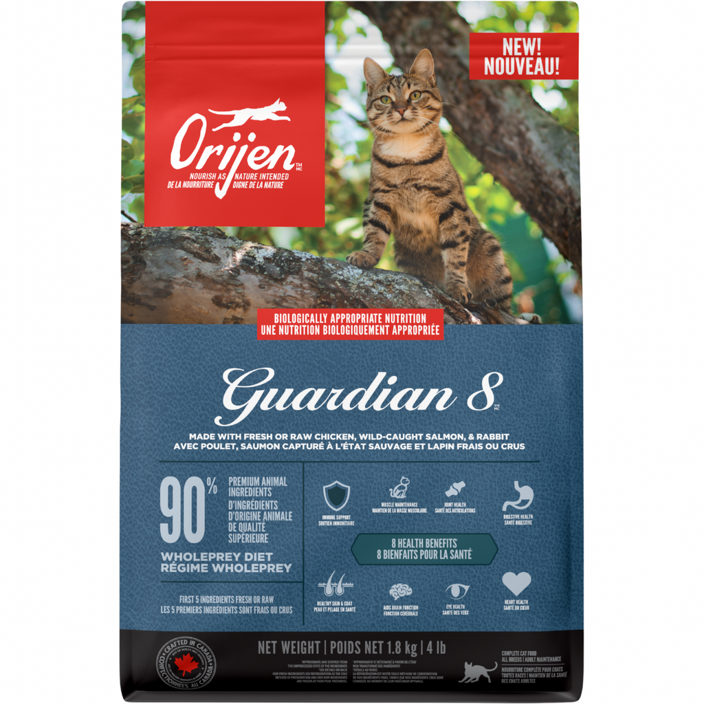 ORIJEN GUARDIAN 8 ADULT CAT FOOD is formulated to meet the nutritional levels established by the AAFCO Cat Food Nutrient Profiles for adult maintenance.