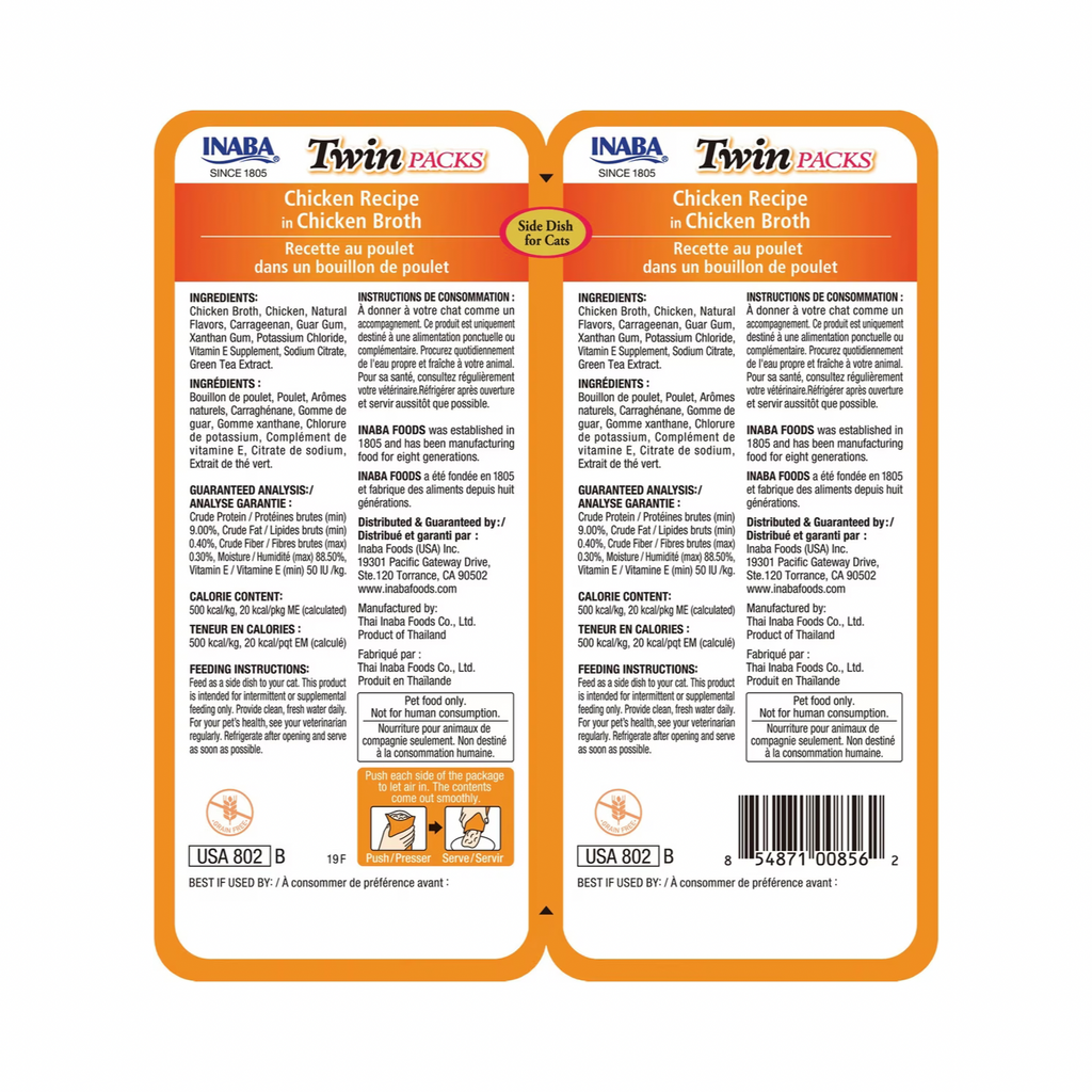 TWICE THE TOPPERS: Twin Packs are two single-serve portions of shredded chicken suspended in a savory chicken, tuna, or scallop broth gelée. Simply break apart, tear open, and use as a topper on wet or dry cat food or as a complement to their meal