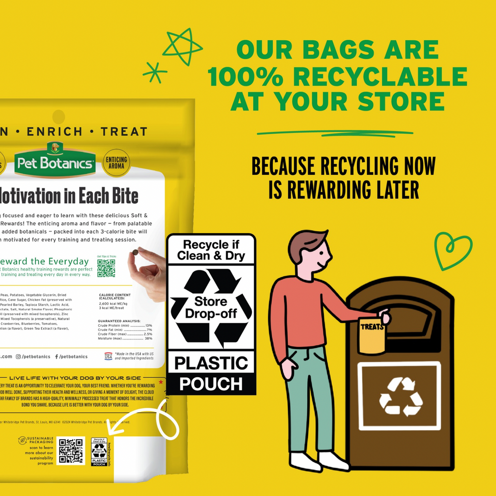 Pet Botanics® Training Rewards™ are perfect for training and treating every day in every way. These bite-sized treats are packed with great flavors and enticing aromas, made from high-quality ingredients, palatable pork liver, and real proteins that keep dogs focused and eager to learn. These training rewards are great for training sessions, enrichment activities such as puzzles and snuffle mats, and everyday treating occasions. Reward the Everyday™.