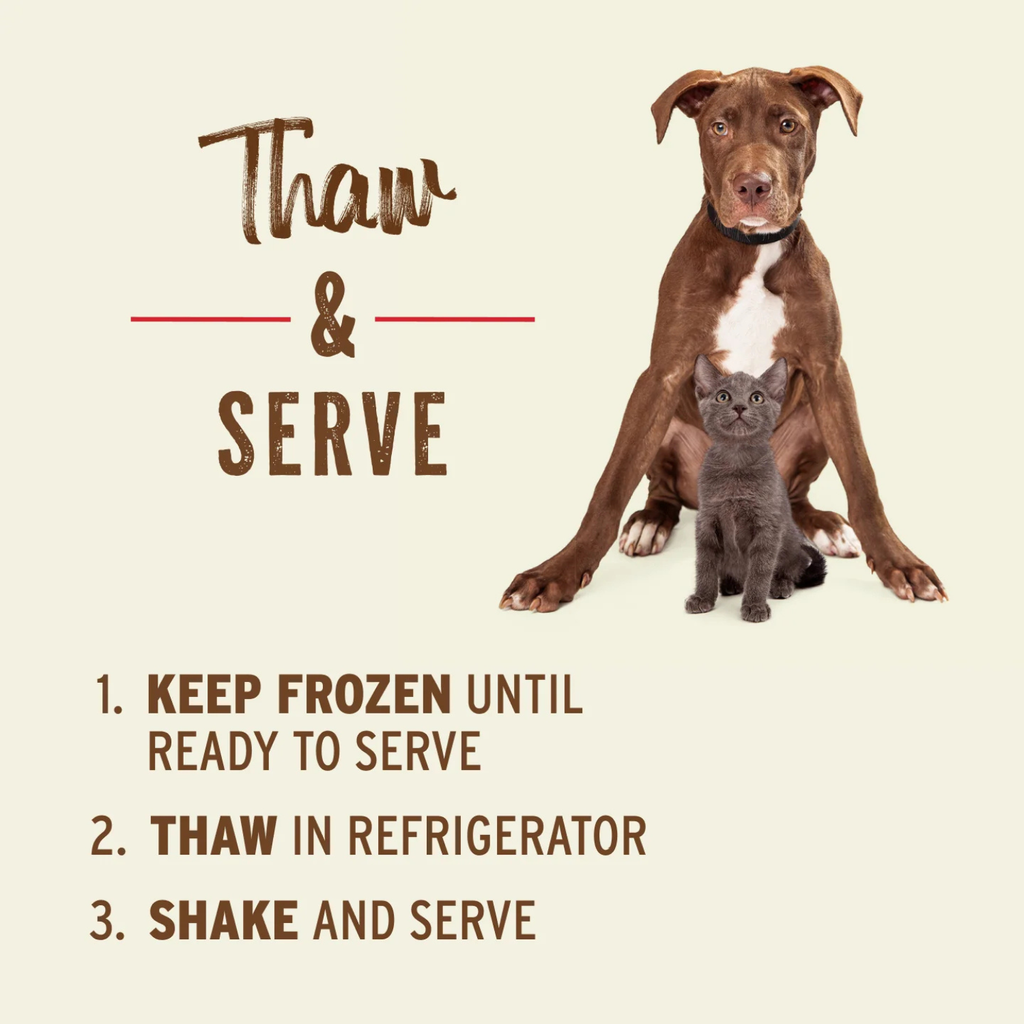 Comme pour tous nos produits bruts, nous recommandons une nouvelle transition lors de l'introduction de nouveaux produits alimentaires à n'importe quel animal de compagnie. Nous vous recommandons de commencer avec ¼ de la quantité d'alimentation quotidienne en tant que portion d'introduction. Le lait s'installera entre les utilisations. Bien agiter avant de nourrir.