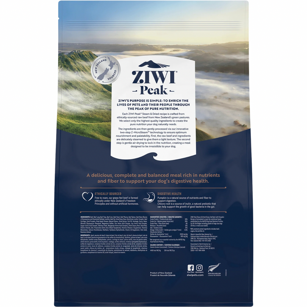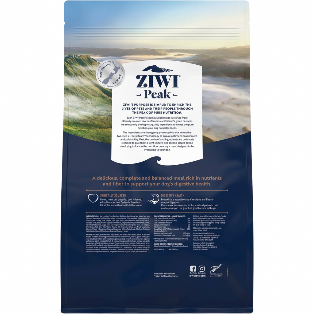 Beef, Beef Lung, Beef Tripe, Beef Liver, Beef Heart, Beef Plasma, Beef Spleen, Beef Bone (Source of Glucosamine and Chondroitin Sulfate), Lecithin, Beef Fat, Dried Green Peas, Dried Green Lentils, Pumpkin, Beef Cartilage, Dried Pumpkin, Dried Apple Pomace, Natural Flavour, Dried Quinoa, Fish Oil, Rutabaga, Carrot, Beets, Minerals (Dipotassium Phosphate, Magnesium Sulfate, Zinc Amino Acid Complex, Iron Amino Acid Complex, Copper Amino Acid Complex, Selenium Yeast, Manganese Amino Acid Complex), Dried Chicory Root, Dried Kelp, Choline Chloride, Salt, Preservative (Citric Acid, Mixed Tocopherols), Vitamins (Vitamin E Supplement, Thiamine Mononitrate, Calcium Pantothenate, Riboflavin, Pyridoxine Hydrochloride, Vitamin D3 Supplement, Folic Acid), Rosemary Extract.
