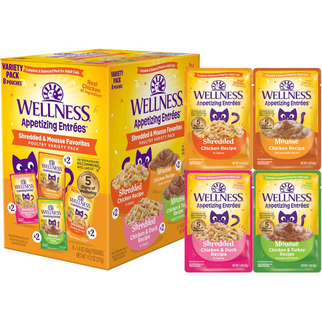 Wet Cat Food - Shredded & Mousse Favorites, Poultry Variety Pack - Adult