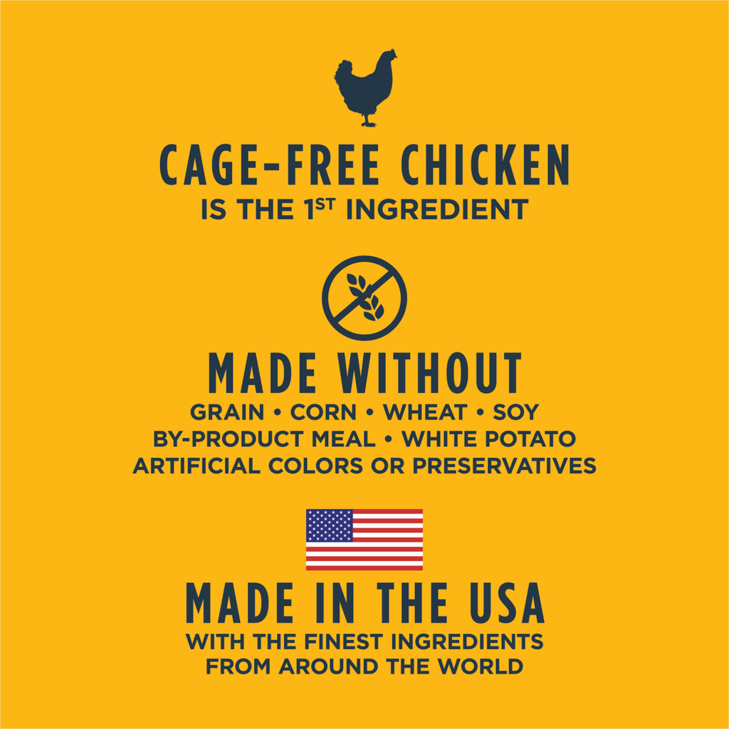 Poulet, repas de poulet, pois, gras de poulet (conservé avec des tocophérols mélangés et de l'acide citrique), du tapioca, un repas de hareng, du poulet lyophilisé, un farine de poisson menhaden, une saveur naturelle, un foie de poulet séché, un coeur de poulet séché, un coeur de poulet séché au coeur de poulet séché au gel , Sel, vitamines (supplément de vitamine E, supplément de vitamine A, L-Ascorbyl-2-polyphosphate, supplément de niacine, mononitrate de thiamine, d-calcium pantothénate, riboflavine Supplement, Pyrine D3 Suppléments, Biotine B12 )), Carottes, pommes, canneberges, argile montmorillonite, minéraux (protéiné zinc, protéiné en fer, protéiné cuivre, chlorure de manganèse, sélénite de sodium, éthylènediamine dihydriodide), chlorure de potassium, taurine, chlorure de choline, balep séchée, huile de salmon, blueberries, bacaulus. Produit de fermentation des coagulans, extrait de romarin.