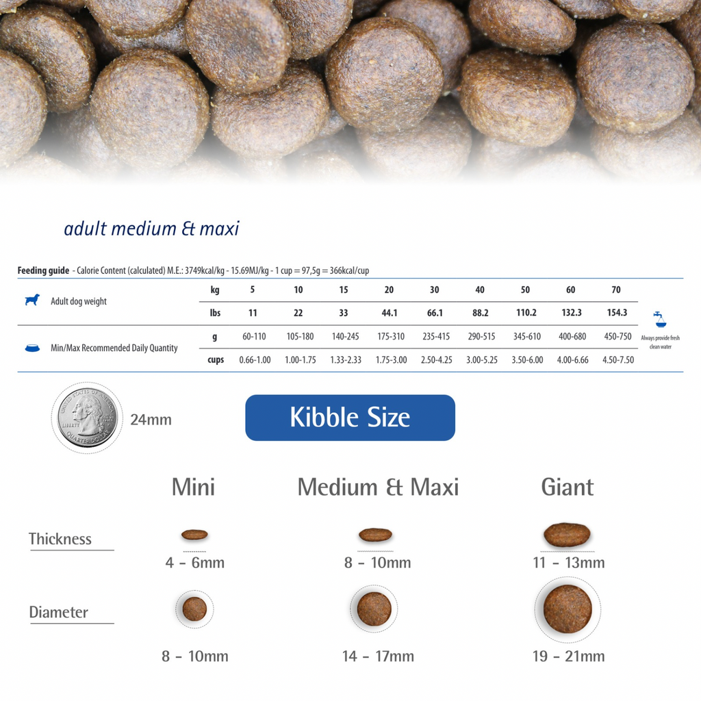 protéine brute (min): 25,00%; graisse brute (min): 12,00%; fibre brute (max): 1,90%; Humidité (max): 9,00%; Ash (max): 7,50%; Acide docosahexaénoïque (DHA) (min): 0,20%; Acide eicosapentaénoïque (EPA) (min): 0,15%; calcium (min): 0,90%; phosphore (min): 0,60%; potassium (min): 0,60%; sodium (min): 0,40%; magnésium (min): 0,09%; Acides gras oméga-6 (min) * 1,90%; Acides gras oméga-3 (min) * 0,40%; Chlorhydrate de glucosamine * (min): 1200 mg / kg; Chondroïtine sulfate * (min): 900 mg / kg. * N'est pas reconnu comme un nutriment essentiel par les profils de nutriments alimentaires AAFCO Chien.