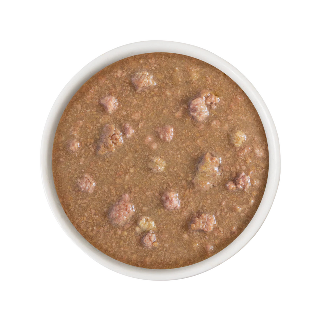 Poulet, bouillon de poulet, bœuf, saveur naturelle, amidon de tapioca, gomme de guar, chlorure de potassium, poudre de céleri, chlorure de choline, taurine, sel, vitamine E Supplément, oxyde de zinc, fer réduit, thiamine mononitrate (vitamine B1), complément de la niacine B3), Sélénite de sodium, Supplément de vitamine A, sulfate de manganèse, sulfate de magnésium, complexe d'acides aminés en cuivre, chlorhydrate de pyridoxine (vitamine B6), pantothénate de calcium, supplément de riboflavine (vitamine B2), acide folique, supplément de vitamine B12, iodure de potassium, vitamine D3 Supplément, complément de biotine