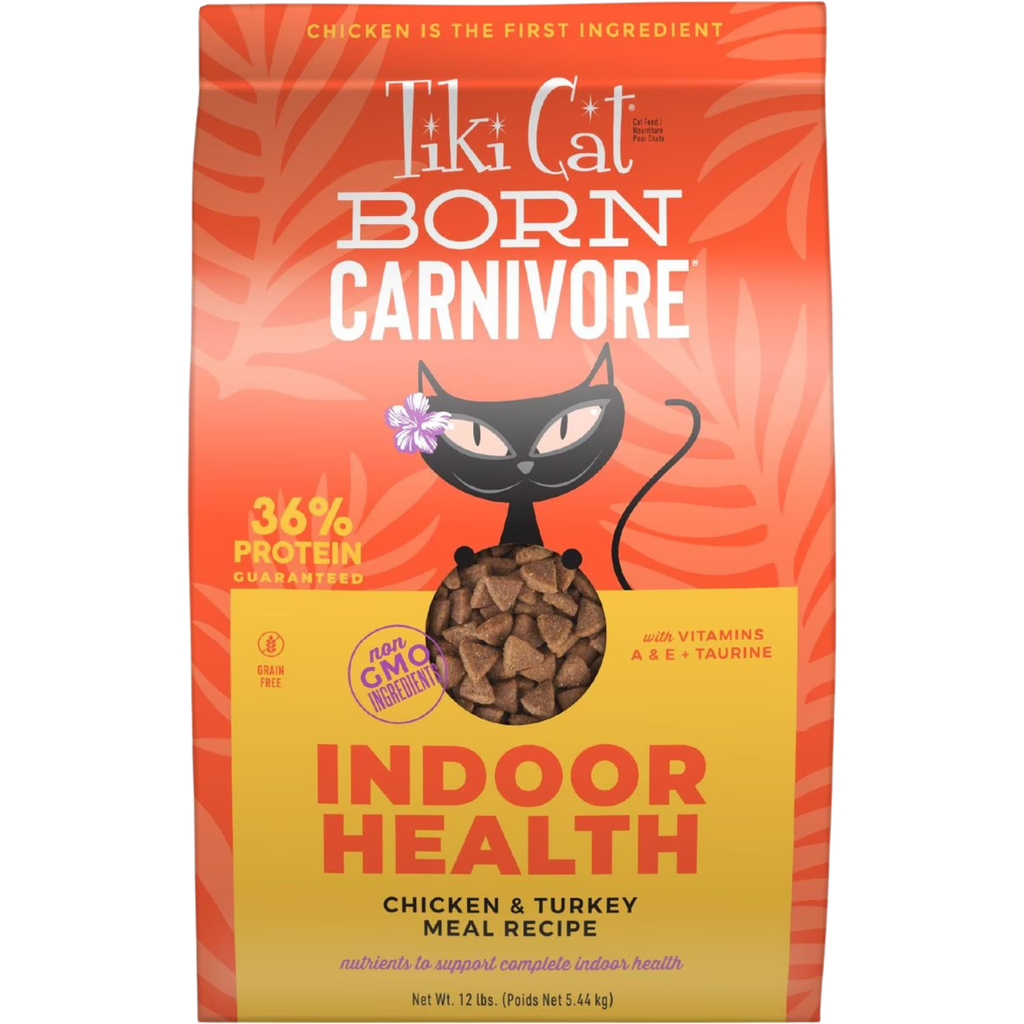 As obligate carnivores, animal-based protein is as essential to cats as air and water. Tiki Cat® Born Carnivore Indoor Health (formerly Essentials) dry cat food gives them the high-protein nutrition they need, using carefully selected ingredients, for noticeably healthy cats.