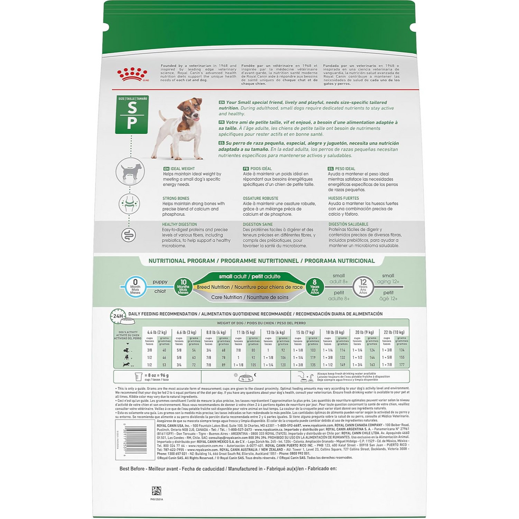 SMALL Adult is designed to meet the specific needs of small breed dogs between 9 and 22 lb, from 10 months to 8 years of age.