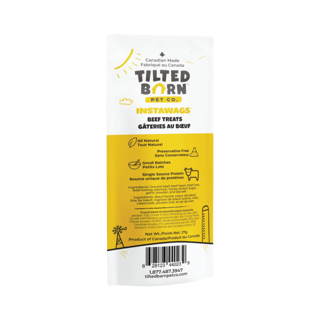 Our Canadian Beef Treats are healthy, soft meaty treats for dogs and cats of all ages and sizes. Our treats are preservative-free and contain no fillers or by-products. Our single-source protein treats are made with all-natural, high-quality, whole ingredients from the human food market sourced from across the Canadian Prairies, and are 100% Canadian-made. Our treats are available in 100g resealable packages.