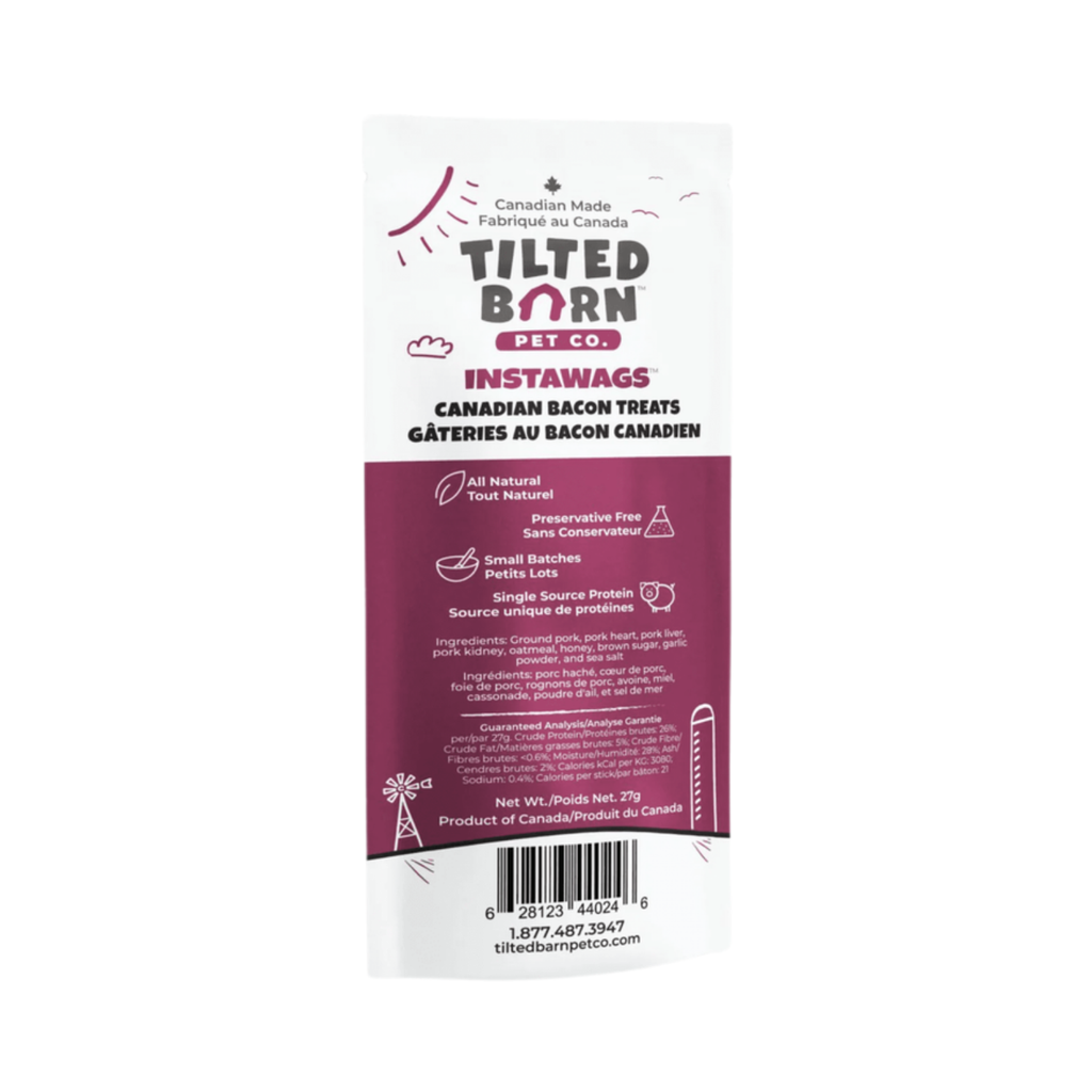 Our Canadian Bacon Treats are healthy, soft meaty treats for dogs and cats of all ages and sizes. Our treats are preservative-free and contain no fillers or by-products. Our single-source protein treats are made with all-natural, high-quality, whole ingredients from the human food market sourced from across the Canadian Prairies, and are 100% Canadian-made. Our treats are available in 100g resealable packages.
