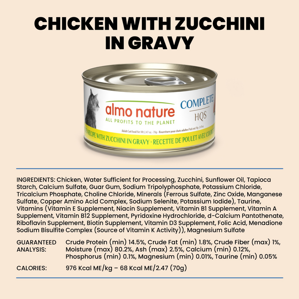 成年猫罐头 - HQS Complete - 肉汁鸡肉西葫芦配方 - 70克