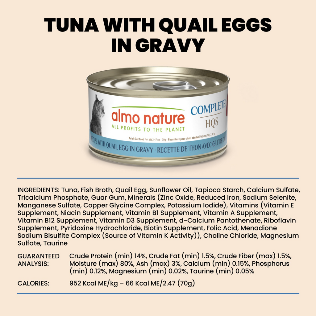 成年猫罐头 - HQS Complete - 肉汁金枪鱼鹌鹑蛋 - 70克