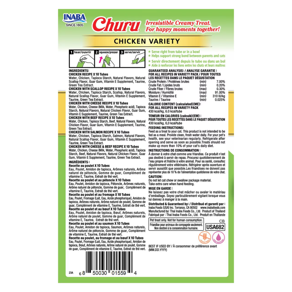 KEEP YOUR FELINE HYDRATED WITHOUT ADDING CALORIES: Each delicious, creamy Churu tube contains 91% moisture and only six calories (a tenth of the calories of traditional dry cat treats), which makes it a healthy snack you can feel good about feeding