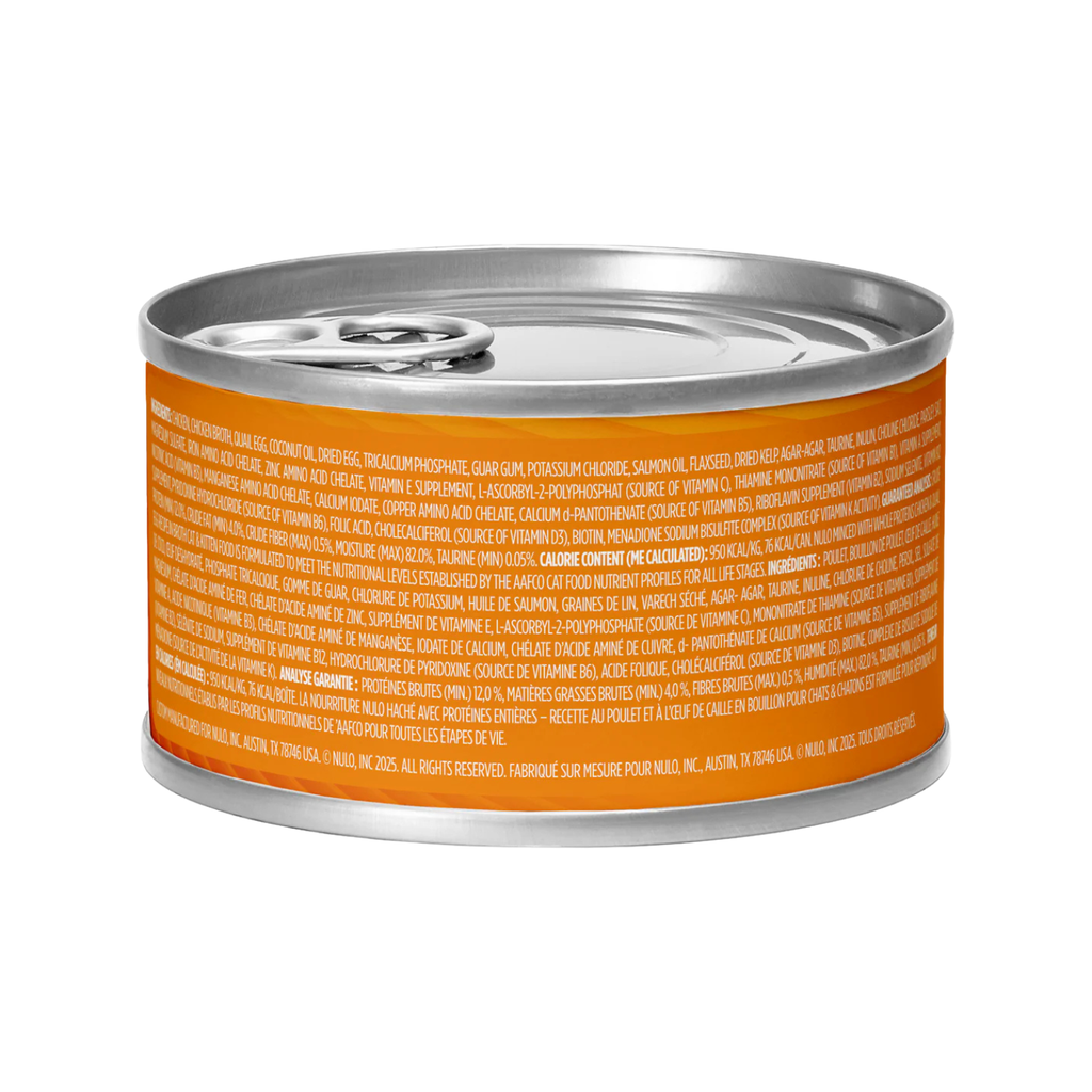 Nulo Minced with Whole Proteins Chicken & Quail Egg Recipe in Broth Cat & Kitten Food is formulated to meet the nutritional levels established by the AAFCO Cat Food Nutrient Profiles for all life stages.