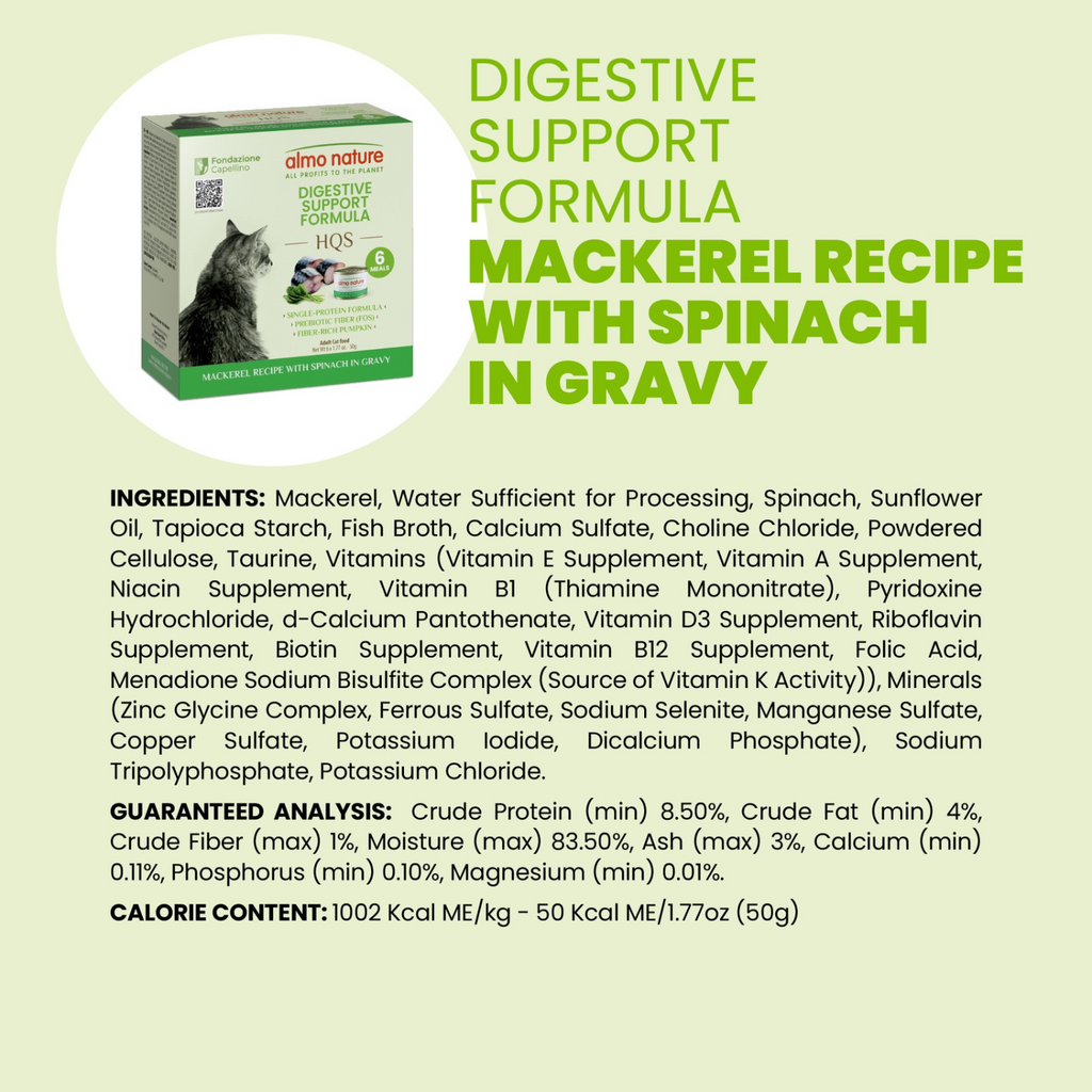 成年猫罐头 - HQS Digestive - 肉汁马鲛鱼菠菜配方 - 50克×6罐装