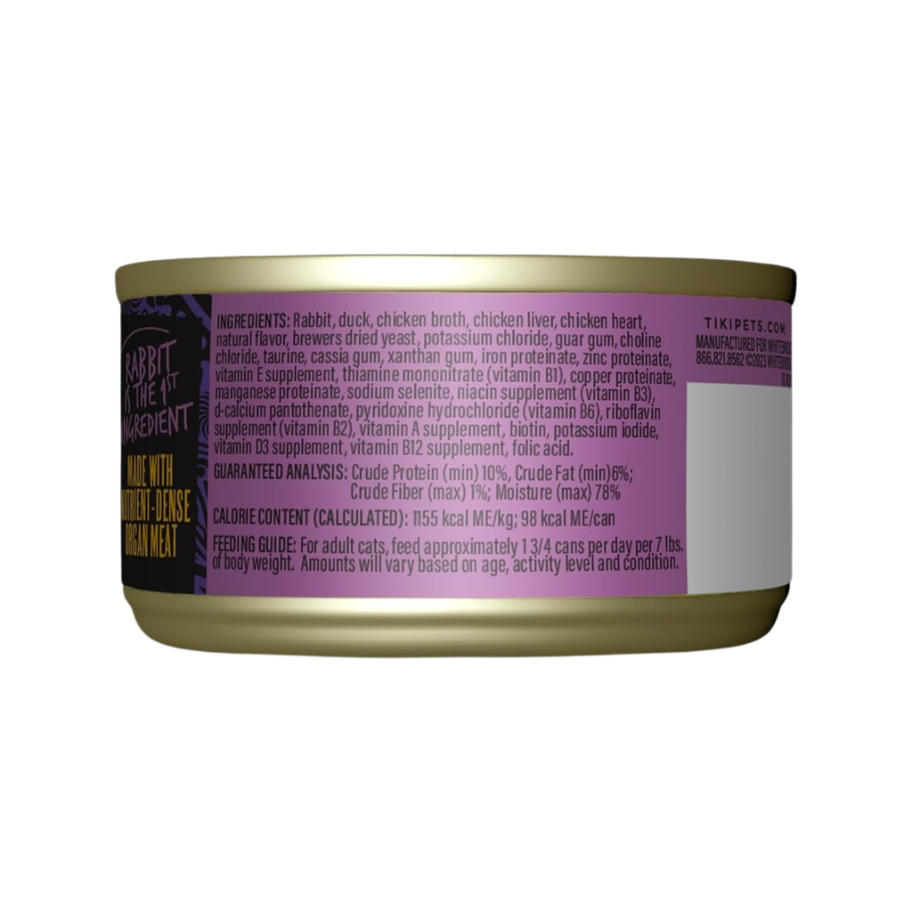 Tiki Cat® After Dark® Rabbit & Chicken Liver Recipe is formulated to meet the nutritional levels established by AAFCO Cat Food Nutrient Profiles for Maintenance.