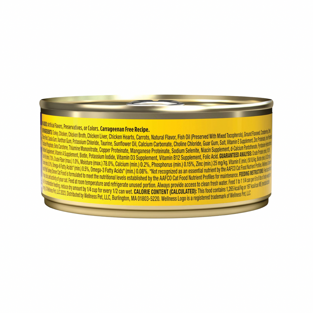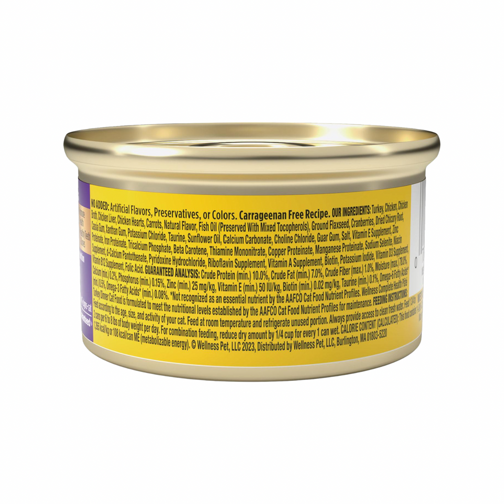 Turkey, Chicken, Chicken Liver, Chicken Broth, Chicken Hearts, Carrots, Natural Flavor, Fish Oil (Preserved With Mixed Tocopherols), Ground Flaxseed, Cranberries, Dried Chicory Root, Cassia Gum, Xanthan Gum, Potassium Chloride, Taurine, Sunflower Oil, Choline Chloride, Guar Gum, Calcium Carbonate, Salt, Vitamin E Supplement, Zinc Proteinate, Iron Proteinate, Tricalcium Phosphate, Beta Carotene, Niacin Supplement, Thiamine Mononitrate, Copper Proteinate, Manganese Proteinate, Sodium Selenite, Vitamin A Supplement, d-Calcium Pantothenate, Vitamin B12 Supplement, Riboflavin Supplement, Pyridoxine Hydrochloride, Biotin, Folic Acid, Potassium lodide, Vitamin D3 Supplement.