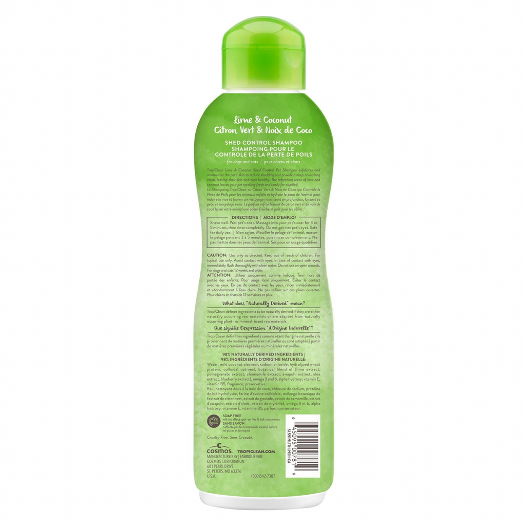 狗猫专用洗发水 - 青柠与可可脂控毛配方 - 20液体盎司